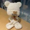 Baby Mütze Herbst und Winter Niedlicher Bär Baby Plüsch Ohrenmütze Schal Set Warm Jungen und Mädchen Pullover Mütze
