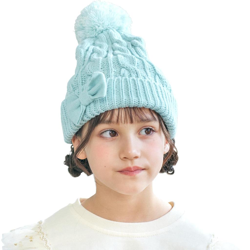 Arisana Kinder Zopfstrickmütze für Mädchen mit Warm für Winter Einheitsgröße passt Schleife, (JP, Alphabet, Alle, Neu)