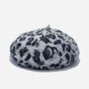 Stilvolle Damen Baskenmütze aus Kaninchenfell mit Leopardenmuster
