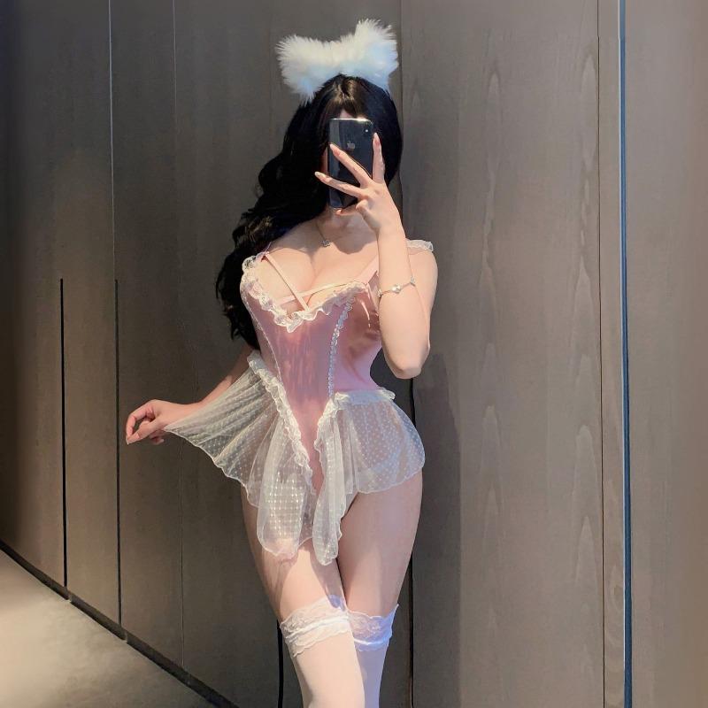 New sexy lingerie, sexy bare-chested maid, purple spice girl, hip-showing uniform set, pajamas, pure desire robe one-piece.