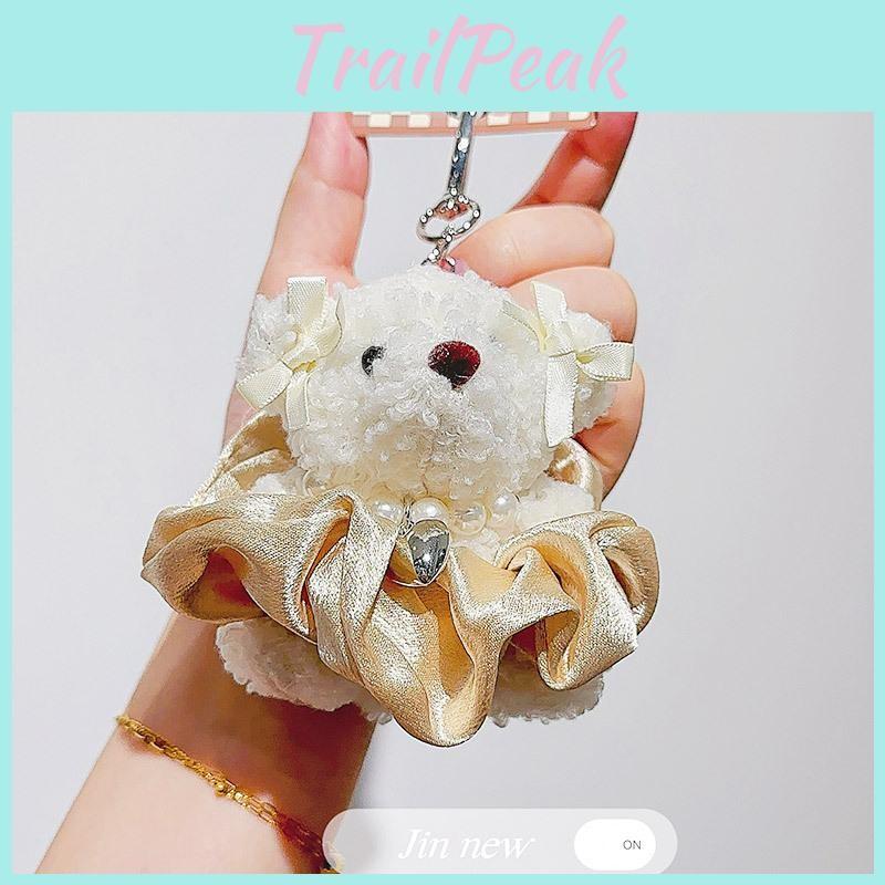 Skirt Small Pearl Bear Plush Keychain With Durable Rope For Bag Decoration Gift
