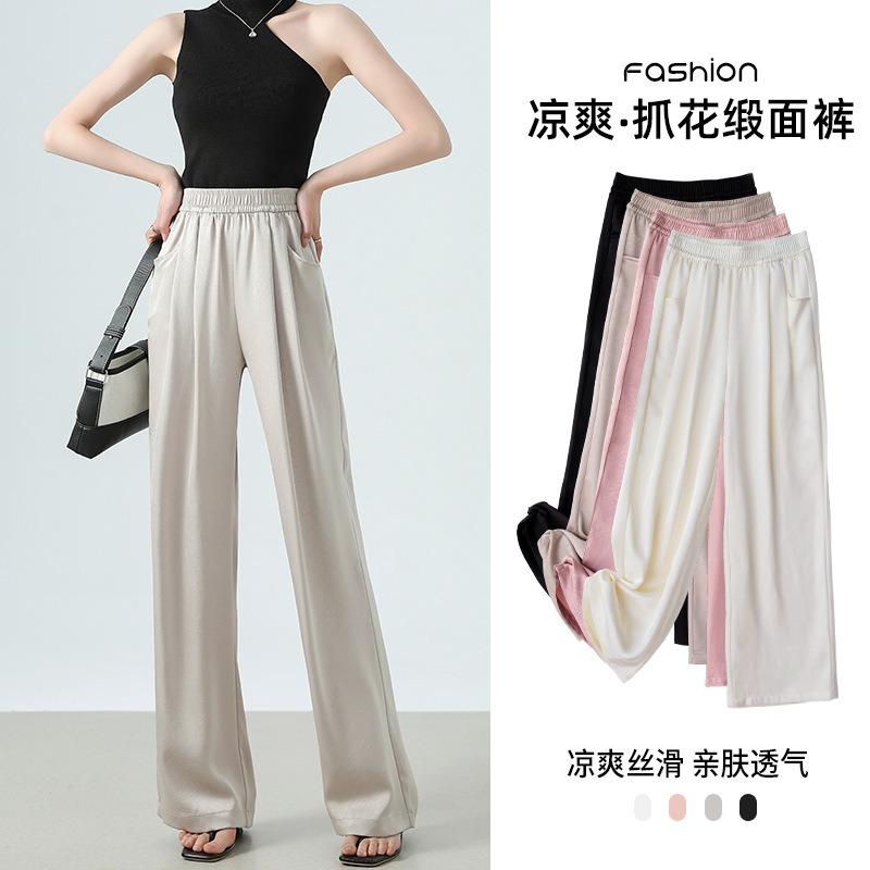 Ice silk acetic acid wide-leg pants women's summer thin casual straight high waist drape loose scratch satin sunscreen pants