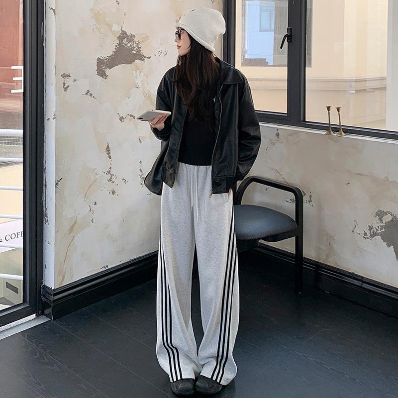 High Street Sweatpants Women's Autumn New Striped High Waist Loose Tights Sweatpants Casual Wide Leg Pants