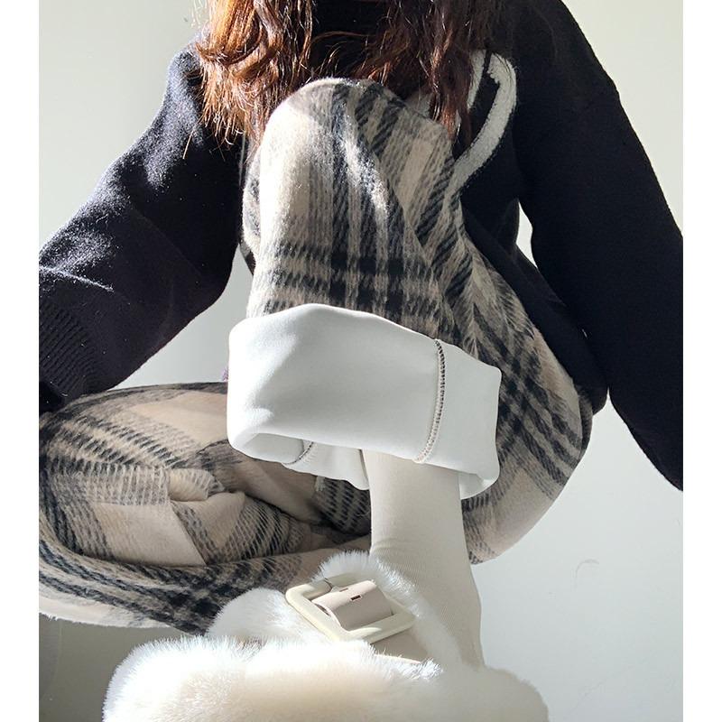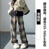 Woolen plaid pants women's spring new high-waisted coffee-colored casual straight-leg pants, thin and narrow wide-leg pants