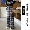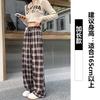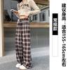 Coffee plaid casual pants women's autumn and winter new loose straight short wide-leg pants autumn trousers