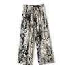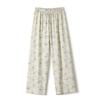 White tea casual versatile wide-leg pants chiffon printed casual pants women's new lazy retro loose drape