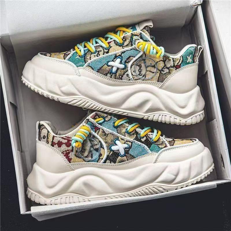 Nischen Herrenschuhe atmungsaktiv vielseitig dicksohlige Stoff Brotschuhe rutschfest lässige Herren Sportsingle Schuhe trendige Schuhe