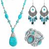 Bohemian Turquoise Water Drop Pendant Short Necklace, Turquoise Handmade Collarbone Chain Women's Exquisite
