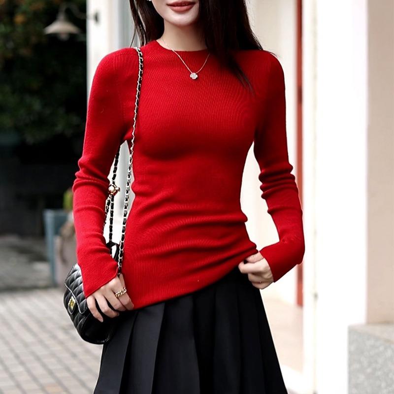 Worsted pure wool machine washable sweater seamless all-in-one semi-turtleneck wool sweater women's top slim fit