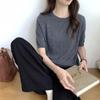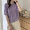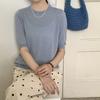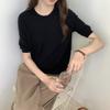 Wool round neck loose pullover knitted bottom women's age-reducing inner short-sleeved sweater