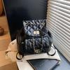 Neue Mode Rhombus Stickgarn Verschluss Mehrfach-Taschen Kette Saugung Große Kapazität Eimer Tasche Mini Kleiner Rucksack