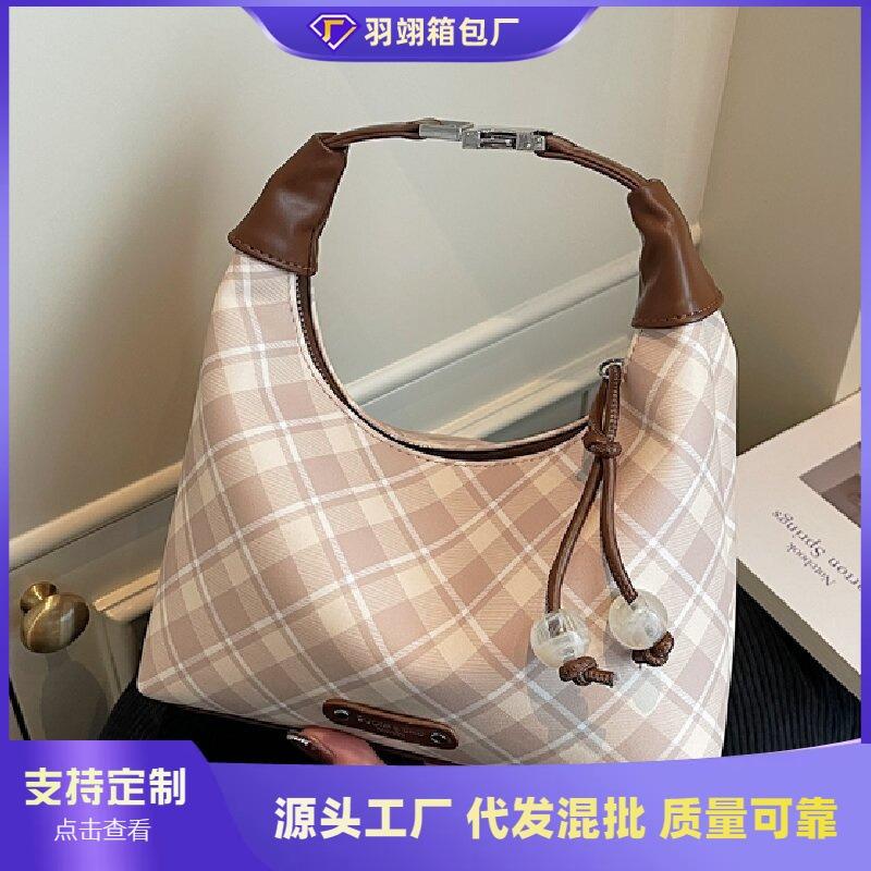 Commuter to work Large capacity tote bag Women's new retro fashion shoulder bag Plaid commuter bag
