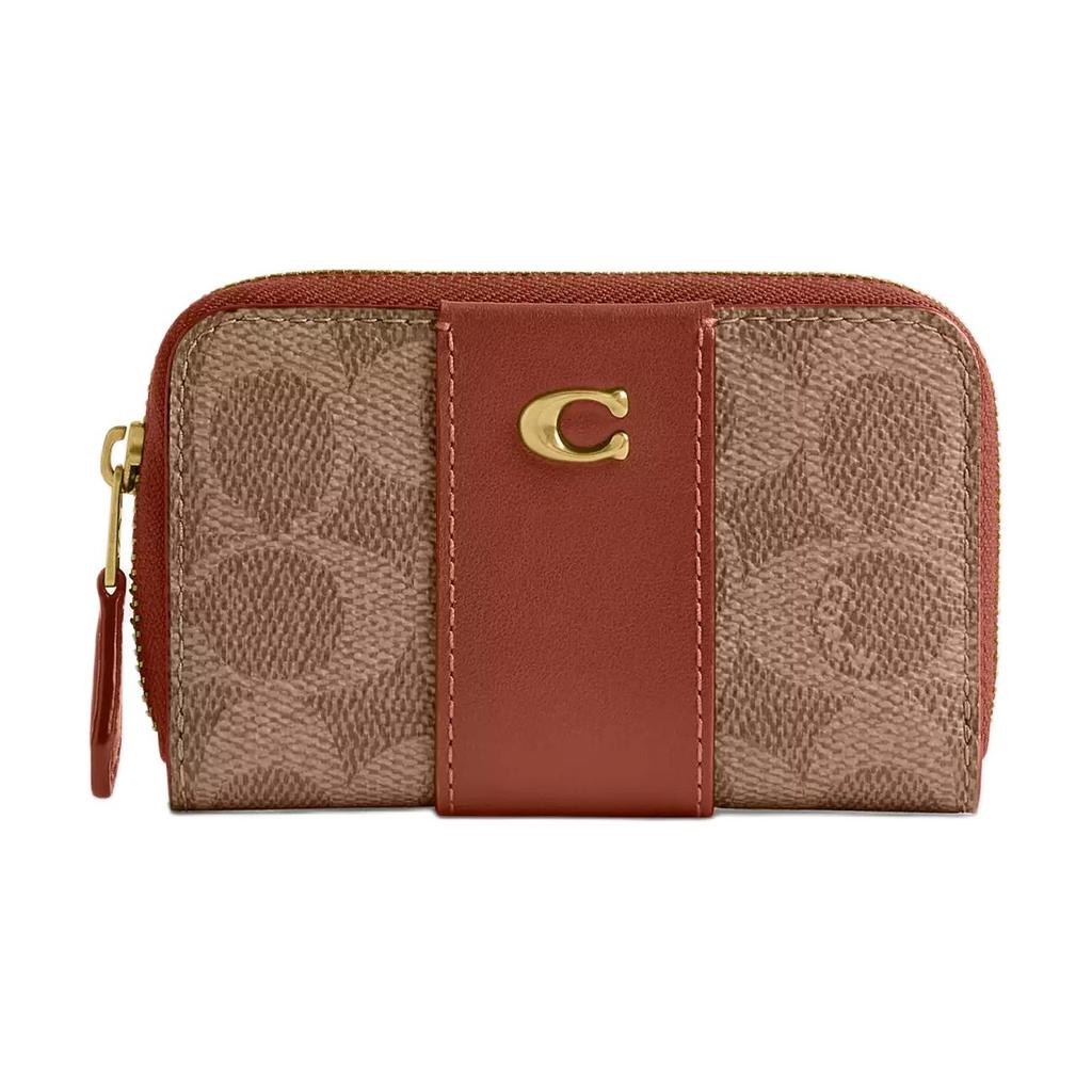New COACH Coated Canvas Card Holder Mini Women's Tan With Caramel CR552-B4XHG