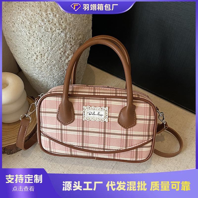 Large capacity handbag commuter rad antique retro plaid style messenger bag retro shoulder bag
