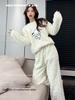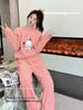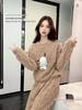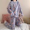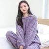 Damen Flanell Pyjama Set, verdickt: Gemütlicher Korallenfleece Langarm Hausmantel für Herbst und Winter.