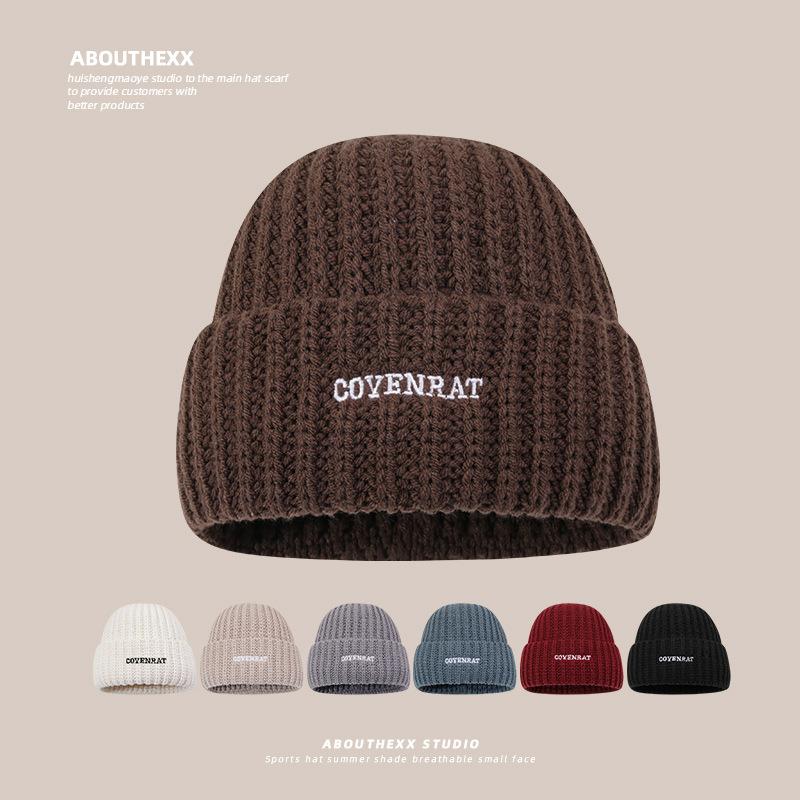 New Autumn and Winter Hat for Women Letter Embroidery Versatile Face Showing Small Wool Hat Warm Ear Protection Fashion Knit Hat Men