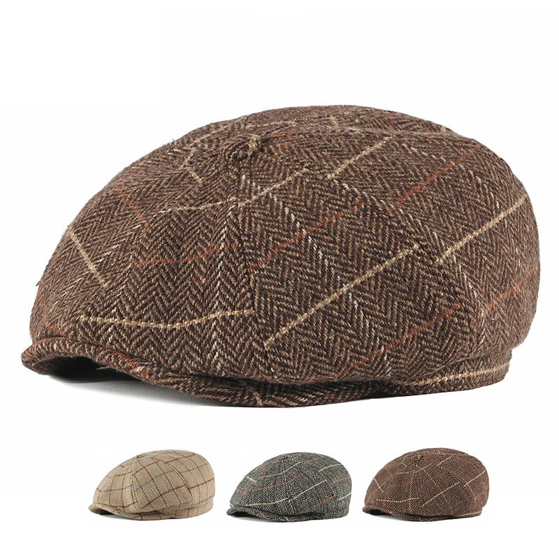 Kariertes Baskenmütze Herren Herbst Winter Wolle Britische Retro Zeitungsjunge Mütze Damen Achteckige Mütze Gatsby Paintsman's Cap Gorro Hombre Boina