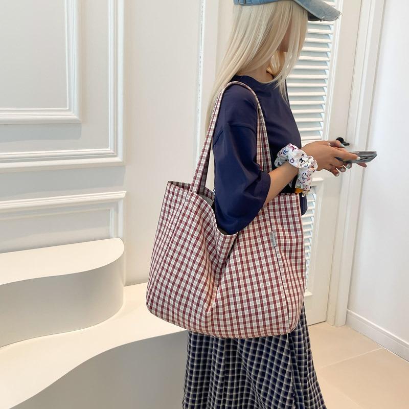 Lässiger literarischer und künstlerischer Stil Karomuster Canvas-Tasche neue große Kapazität vielseitige modische Tragetasche Schultertasche Damen