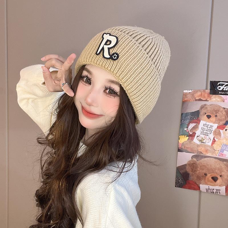 Korean Version New Solid Color Letter Knitted Hat Autumn and Winter Casual Versatile Wool Hat Student Face Little Couple Hat Women