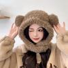 Plush Balaclava Hat for Women In Autumn and Winter Big Head Circumference Warm Hat for Women Bear Ear Knitted Ear Protection Lei Feng Hat