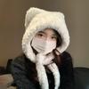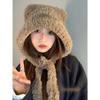 Plush Hat for Women In Winter with Bear Ears Cute Thickened Knitted Hat Warm Ear Protection Big Head Circumference Bag Bag Hat