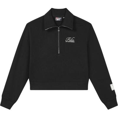 FILA Milano Italian Luxury Sports Collection Solid Color Casual Versatile Half-Zip Polo Sweatshirt Women sweatshirt Black F11W515212F-BK