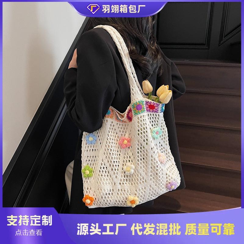 Large capacity knitted woven bag women's summer new casual shoulder bag seaside vacation beach bag