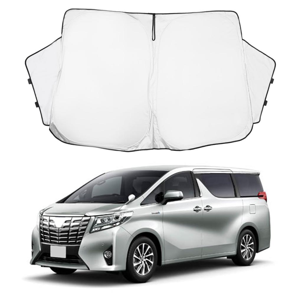 1. [Kompatible Fahrzeuge] Toyota Alphard/Vellfire Serie 30 [Set-Inhalt] 1 Windschutzscheiben-Sonnenblende (Vorderseite: Silber, Rückseite: Schwarz) [Befestigungsmethode] 4-Punkt-Befestigung (Sonnenblende Befestigung + Einsatz Befestigungsvorrichtung) *Dieses Produkt wurde speziell für die neue Alphard/Vellfire 30 Serie entwickelt, und jedes einzelne ist sorgfältig gefertigt, um perfekt zu passen und großartig auszusehen. *Bitte überprüfen Sie die Form vor der Bestellung.