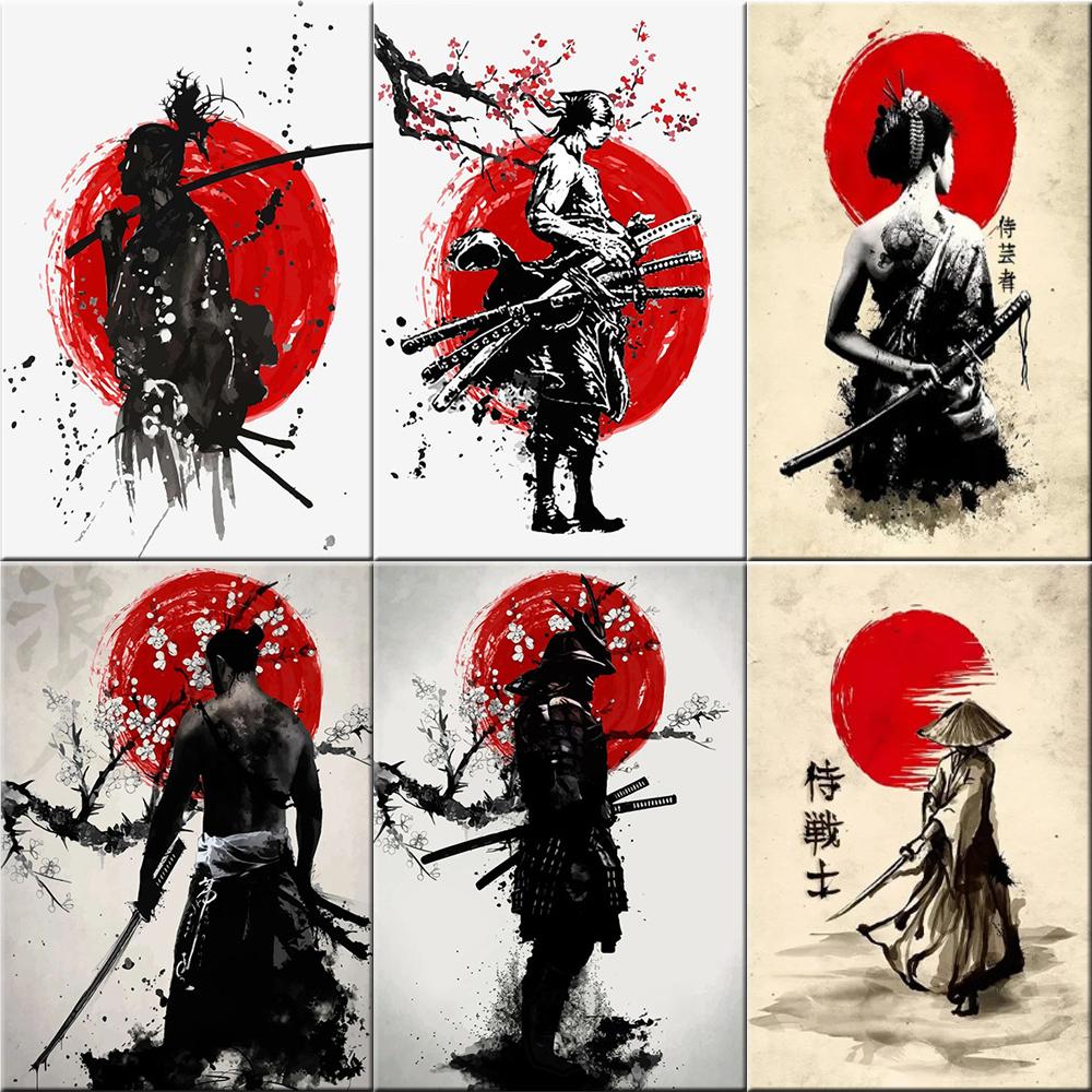 Japanische Samurai Tuschemalerei Leinwand Poster Drucke Anime Japan Samurai Wandkunst Bilder für Wohnzimmer Heimdekor Kein Rahmen