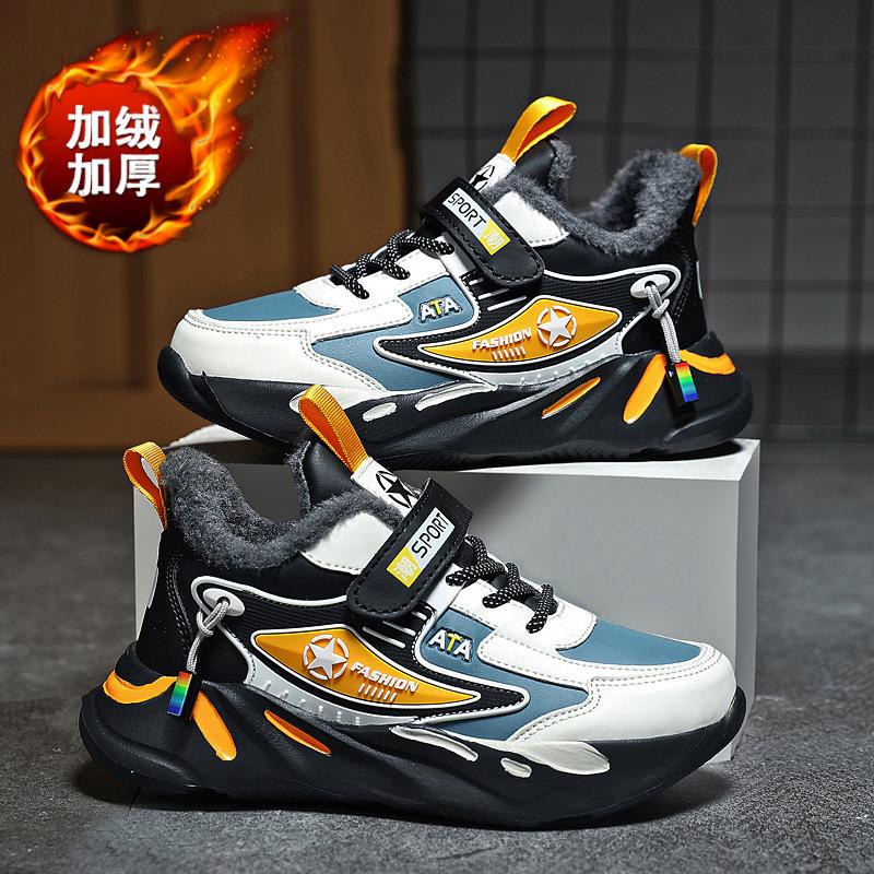 Kinderschuhe Jungen Sportschuhe Winter Baumwollschuhe Fleece gefütterte Jungen Schuhe Mittelschüler und Grundschüler Laufschuhe