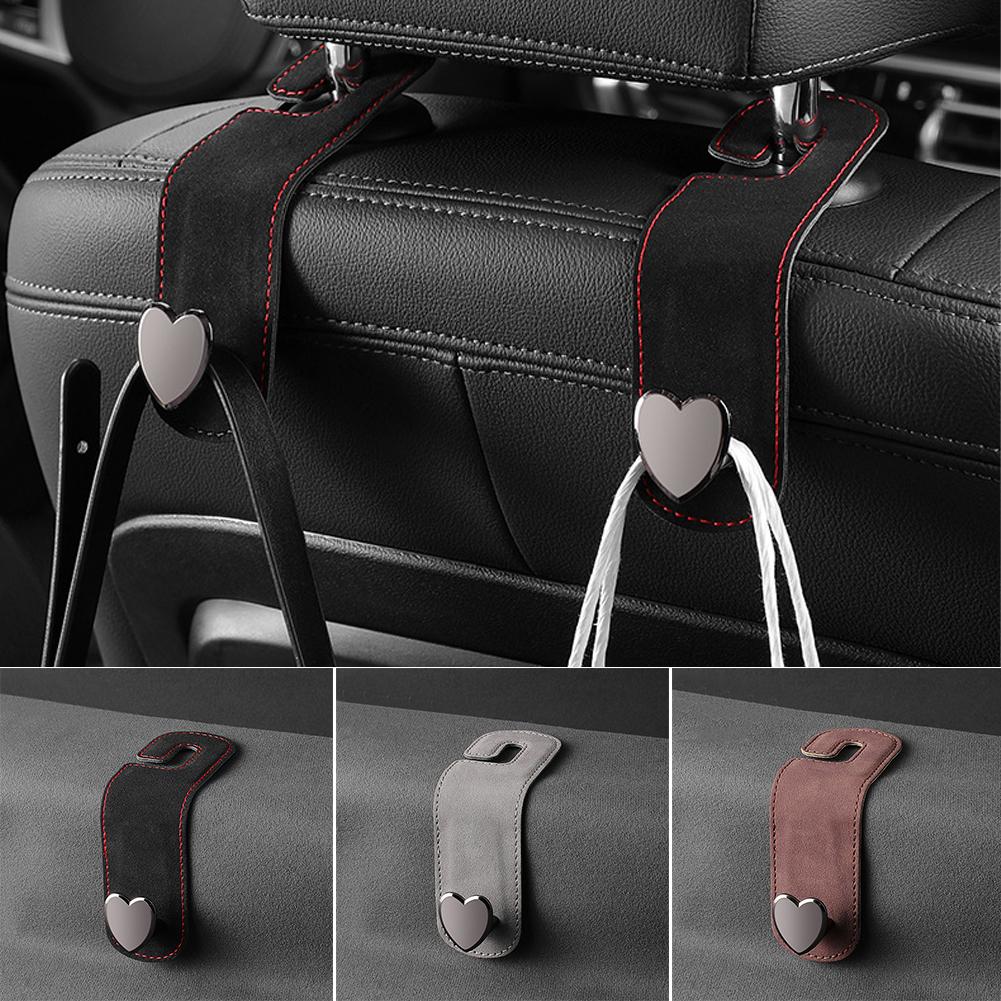 Kopfstützenhaken für Autositze 2 in 1 Leder Herzform Metall Rückenlehnenhaken Handtaschen- und Taschen-Rucksack Doppelhaken Sitzaufhänger