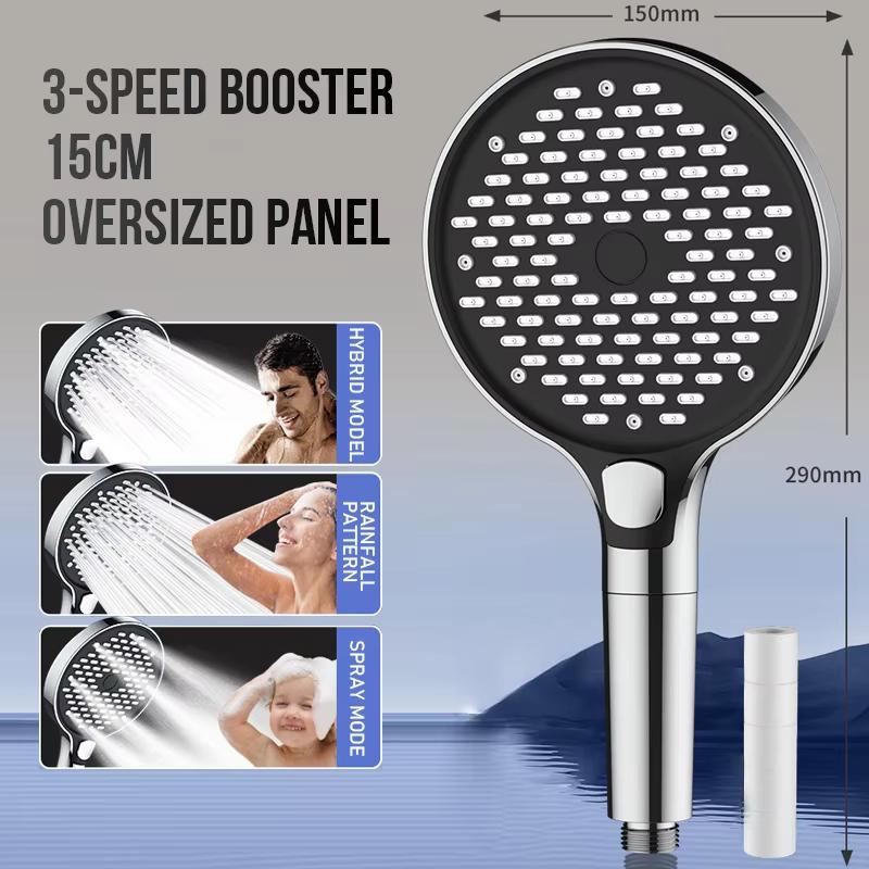 15cm Hochdruck Duschkopf Regendusche 3 Modi Duschköpfe Verstellbar Ein-Knopf Stopp Wasser Massage, Badezimmerzubehör