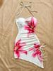 Sommer sexy figurbetontes florales Trägerkleid mit Tasche am Gesäß, Strandstil, eng anliegend und süß