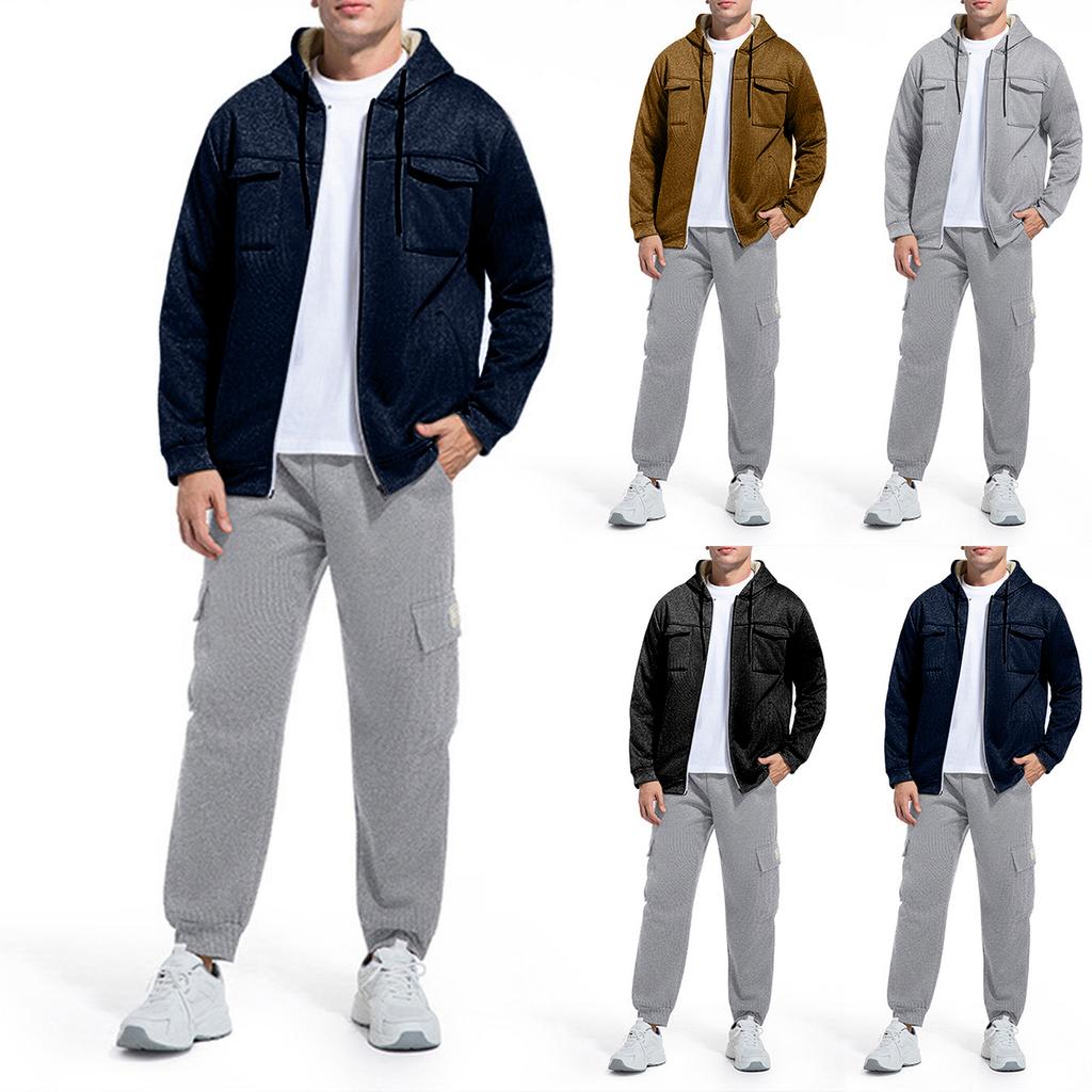 Herren Waverg Reißverschlusstasche Umlegekragen Selbstkultivierung Strickjacke Jacke Set
