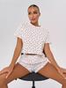 Russian Cotton Heart Print Pajama Set - Women's Short Sleeve & Shorts, European/American Style.