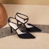 2199-1 Nischen-Luxus spitze High-Heel-Sandalen neue gekreuzte Riemen hohle dünne Absatzsandalen dünne Schuhe Frauen