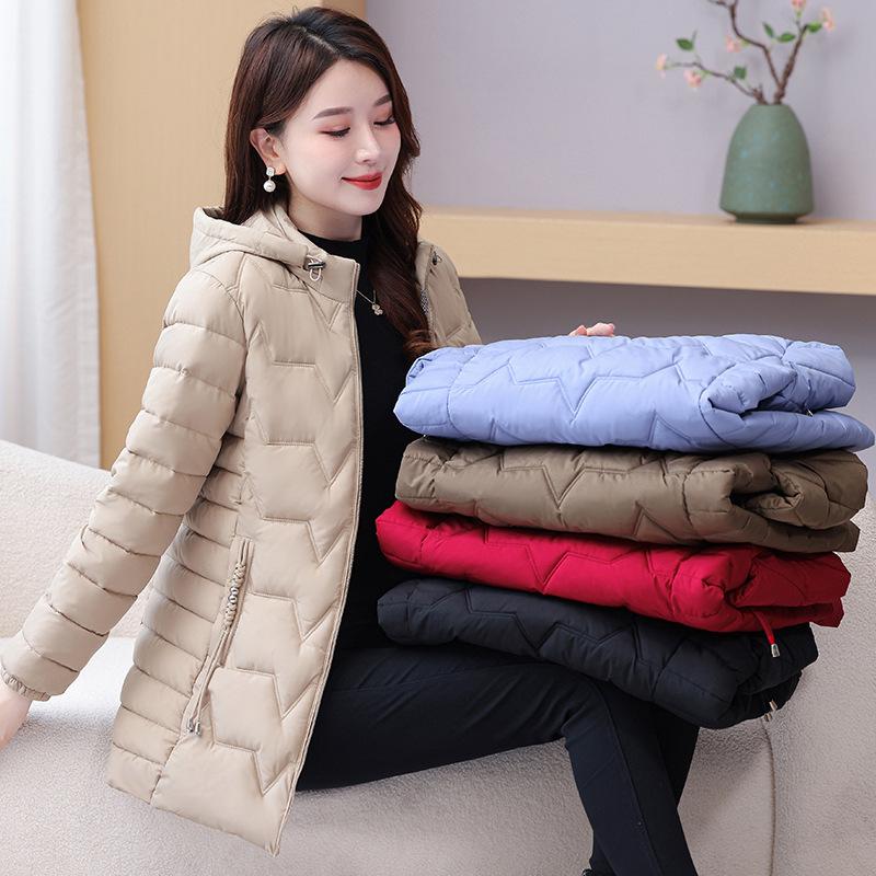 Leichte Daunen-Baumwolljacke Damen Mittellang Winter Schlank Schlankmachend Dick Warm Große Größe Baumwolljacke