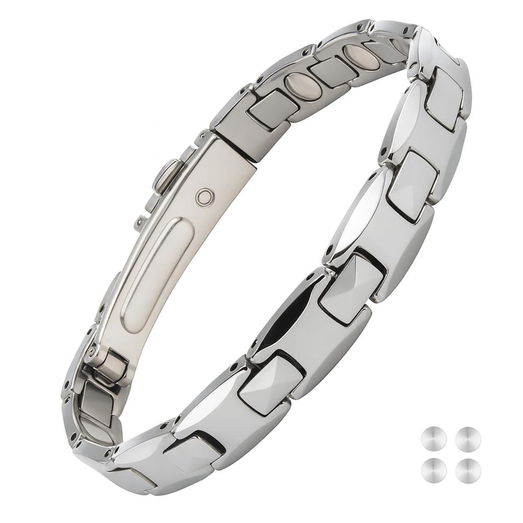 Hachi 12-Piece 99.99% Pure Germanium Bracelet for Men, Anti-Static Magnetic Tungsten All-Germanium (Silver, 20)