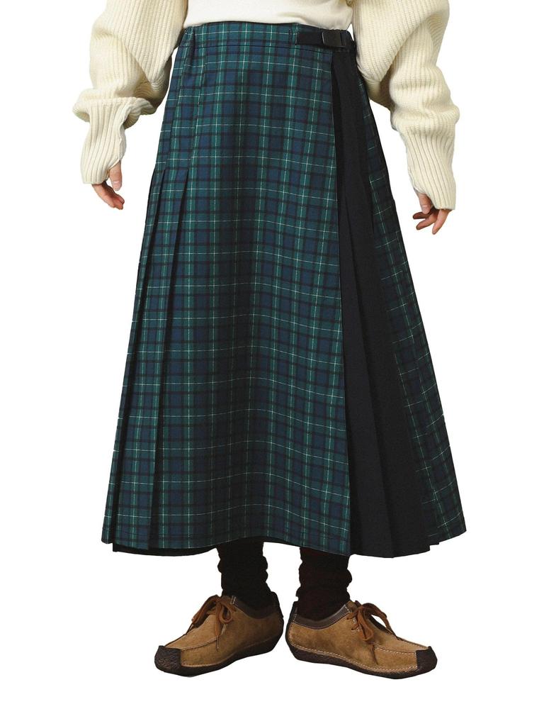 Based on the pleated quilted skirt, a staple of traditional style, this piece features Gramicci's signature sporty ripstop fabric. Bold prints of "BLACKWATCH" and "PIN STRIPE" enhance the traditional feel. The fusion of outdoor-inspired material and classic design is a truly special collaboration between BEAMS BOY and Gramicci.