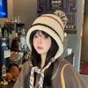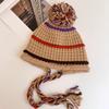 Hand woven Autumn and Winter Warm Hat for Women with Straps and Ear Protection Knitted Hat Showing Face Small Pullover Hat Tassel Woolen Hat