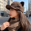 Koreanische Retro Wildleder Katzenohrenmütze für Damen Süße und niedliche Baskenmütze Herbst und Winter Gesicht zeigende Kleine Malerin Achteckige Mütze