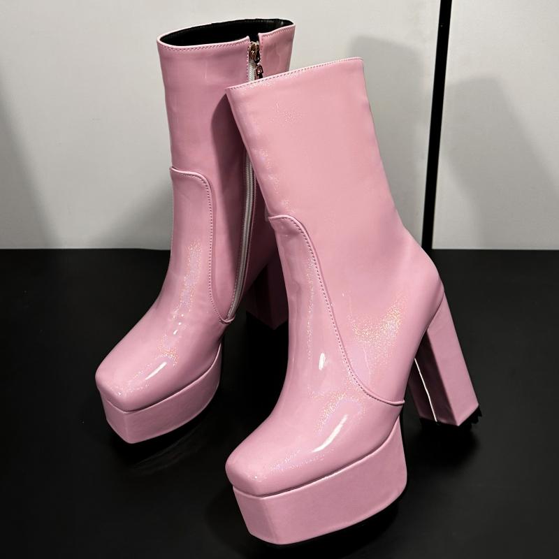 Plateau-Stiefeletten für Damen Schwarz Weiß Blau Rosa Hoher Absatz Kurzer Regenstiefel Herbst Winter Party Tanzschuhe Weiblich Sexy