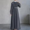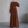 ZANZEA Damen Lässig Rundhals Locker Langarm Plissiertes Langes Kleid