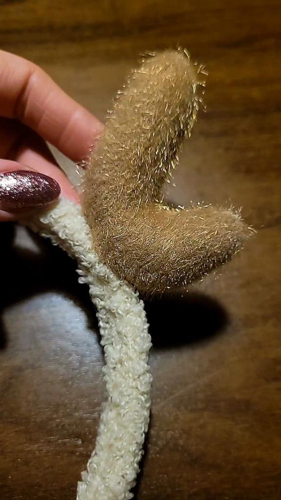 * Rentier-Haarreifen * 💥𝗟𝗶𝗲𝗳𝗲𝗿𝘇𝗲𝗶𝘁 20 Tage 💥𝗟𝗶𝗲𝗳𝗲𝗿𝘂𝗺𝗳𝗮𝗻𝗴 Im Lieferumfang enthalten ist 1 Haarreifen in entsprechender Farbe. Verfügbar ist der Haarreifen in 3 unterschiedlichen Farben : rosa, rot und braun. Ich habe den braunen bestellt. Verpackt waren er in einer regulären einfachen Plastikfolie. 💥𝗤𝘂𝗮𝗹𝗶𝘁ä𝘁 Besonders gut gefällt mir an dem Haarreif, dass er so schön flauschig weich ist. Das Material, welches sich um den Haarreifen herum befindet erinnert sich erinnert einen ein bisschen an Teddyfell. Das Geweih ist mit einer Art Kunstpelz überzogen. Leider habe ich einrn keinen Riss an einem Geweih festgestellt. Könntet aber auch durch den Transport passiert sein . Ansonsten ist der Haarreif sehr elastisch und angenehm zu tragen. Ich finde der Harald sieht angezogen sogar noch Süße aus, als auf den Fotos.. Die Farben sehen genauso aus wie auf den herstellerfotos.. Material: unbekannt 💥𝗙𝗮𝘇𝗶𝘁 Super süßer Haarreif, Der gerade jetzt in der Weihnachtszeit super süß zu tragen ist... perfekt für Kinder oder junggebliebene Erwachsene. Leider war bei mir ein Geweih bereits etwas eingerissen, was durch den Transport passiert sein könnte. Daher ein Stern Abzug 🌟🌟🌟🌟