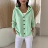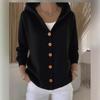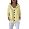 Damen Strickjacke mit V-Ausschnitt, Kapuze und braunen Knöpfen, gemütlicher lässiger Pullover
