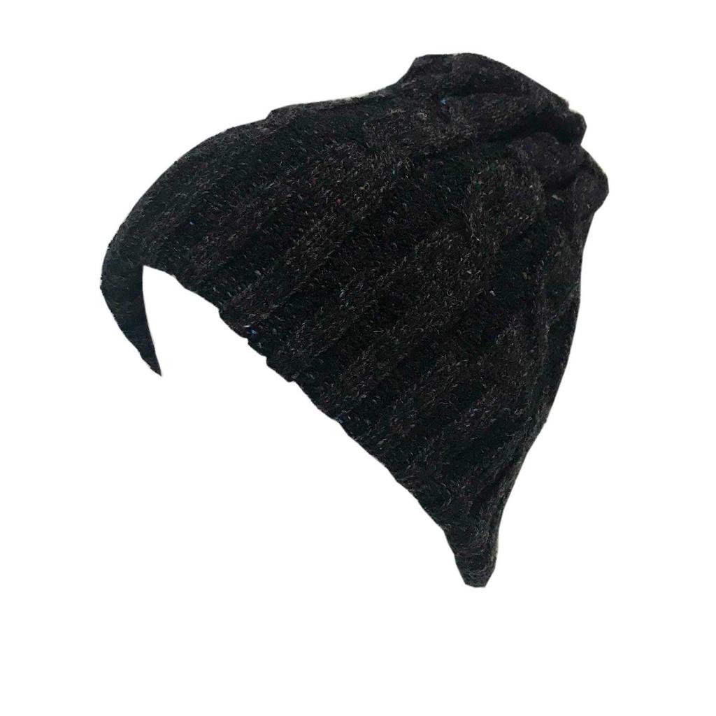 TERAICHI Twisted Cable Knit Stretch Reversible Neck Warm and Warm Hat, Unisex, Warmer, (Black)