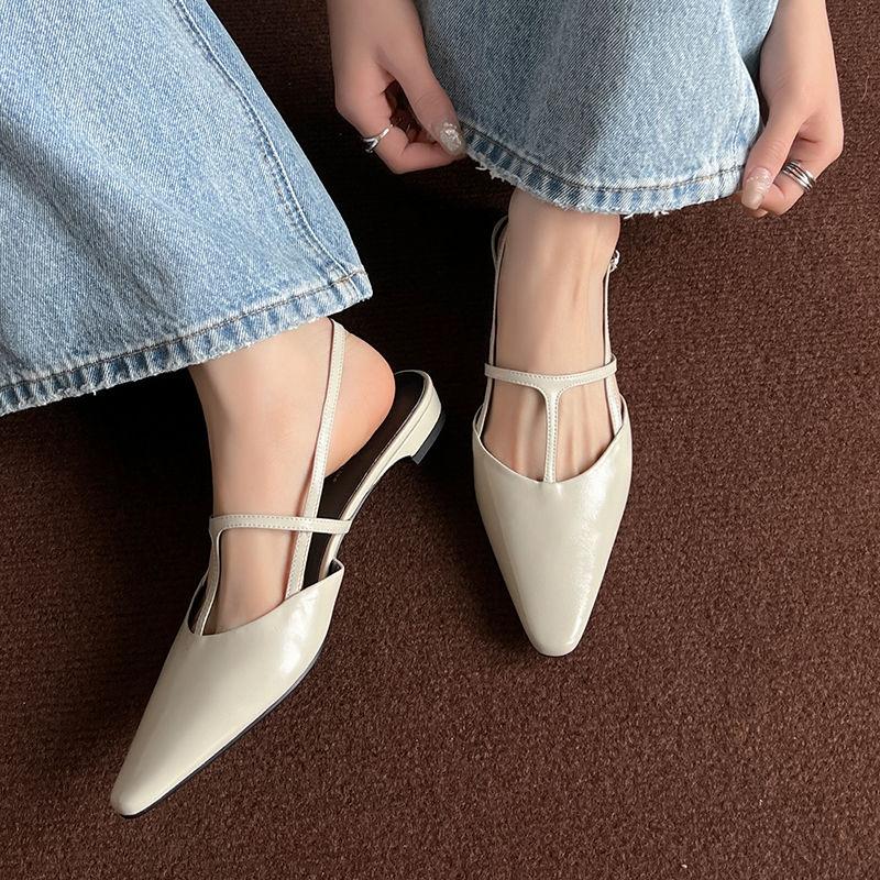 Mode NEU Sommer Damen Sandalen Echtes Leder Schuhe für Damen Zehen bedeckt Slingback Schuhe Spitze Zehen Niedriger Absatz Prägnante Designer Sandalen
