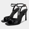 Modische Sexy Quadratische Offene Zehenpartie Hohe Absätze Damen Sommer Elegante Party Büro Schuhe Schwarzes Lackleder Knöchelriemen Schnalle Absatzsandalen