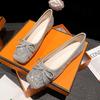 Mode Bling Bling Damen Schleife Ballerinas Schuhe eckige Zehen Leder Patchwork Ballerinas Frau Silber Glitzer Slipper 2025