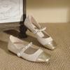 Mode Damen Lolita Kette Riemen Mary Janes Gemischte Farbe Gold/Silber Ballerinas mit flachem Absatz Quadratische Zehenpartie Slipper Alltag Barfußschuhe Damen